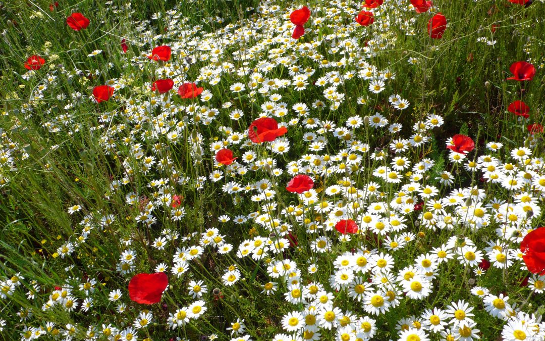 Λίγο πιο πέρα, στο λιβάδι γύρω από το εκκλησάκι της Αγίας Παρασκευής, η άνοιξη απλώνεται γενναιόδωρα. Κόκκινες και μοβ ανεμώνες, λουλούδια, δημιουργούν ένα σκηνικό που σε καλεί να περπατήσεις αργά, να αναπνεύσεις βαθιά, να μείνεις στη στιγμή.
